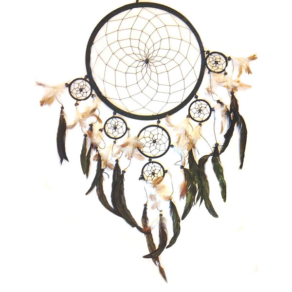 New!  very Large 32cm dream catcher Black with 6 smaller circles. 32cm x 75cm (13" x 30")An impressive decorative piece.